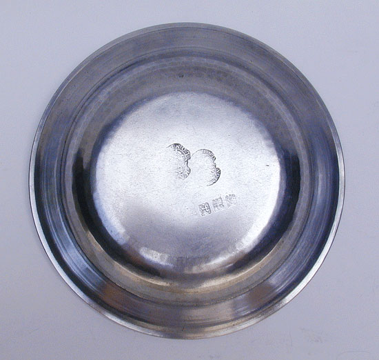 This 8 3/8" pewter plate was made by the firm of Townsend & Compton of London. This was a partnership between John Townsend and his son-in-law Thomas Compton.